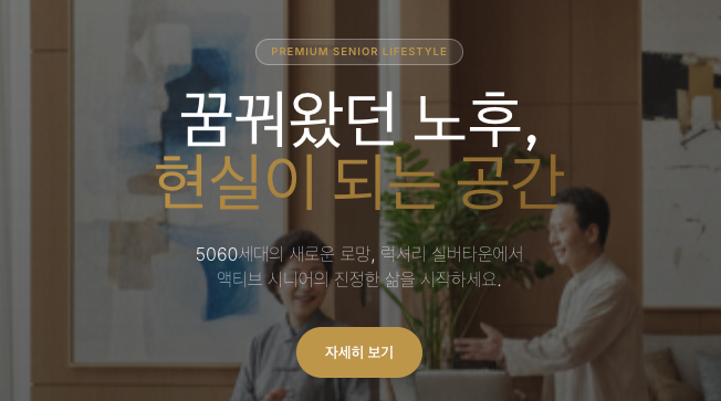 럭셔리 실버타운: 5060 액티브 시니어를 위한 완벽한 노후 Premium Senior Lifestyle 꿈꿔왔던 노후, 현실이 되는 공간 5060세대의 새로운 로망, 럭셔리 실버타운에서 액티브 시니어의 진정한 삶을 시작하세요. 자세히 보기 안녕하세요! 당신의 품격 있는 내일을 설계합니다. 5060세대의 새로운 로망, 고급 실버타운에 대해 궁금하신 점이 있으신가요? 단순한 거주 공간을 넘어 삶의 질을 바꾸는 특별한 선택에 대해 상세히 안내해 … 더 읽기